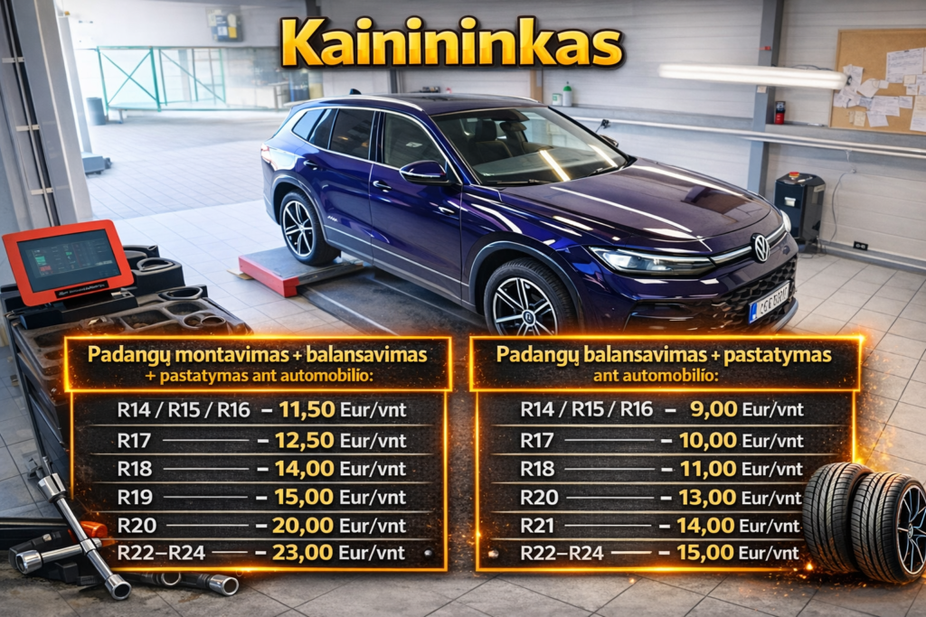 - Dideli ratai iki R24 – profesionaliai montuoju ir balansuojau net didžiausius ratlankius.