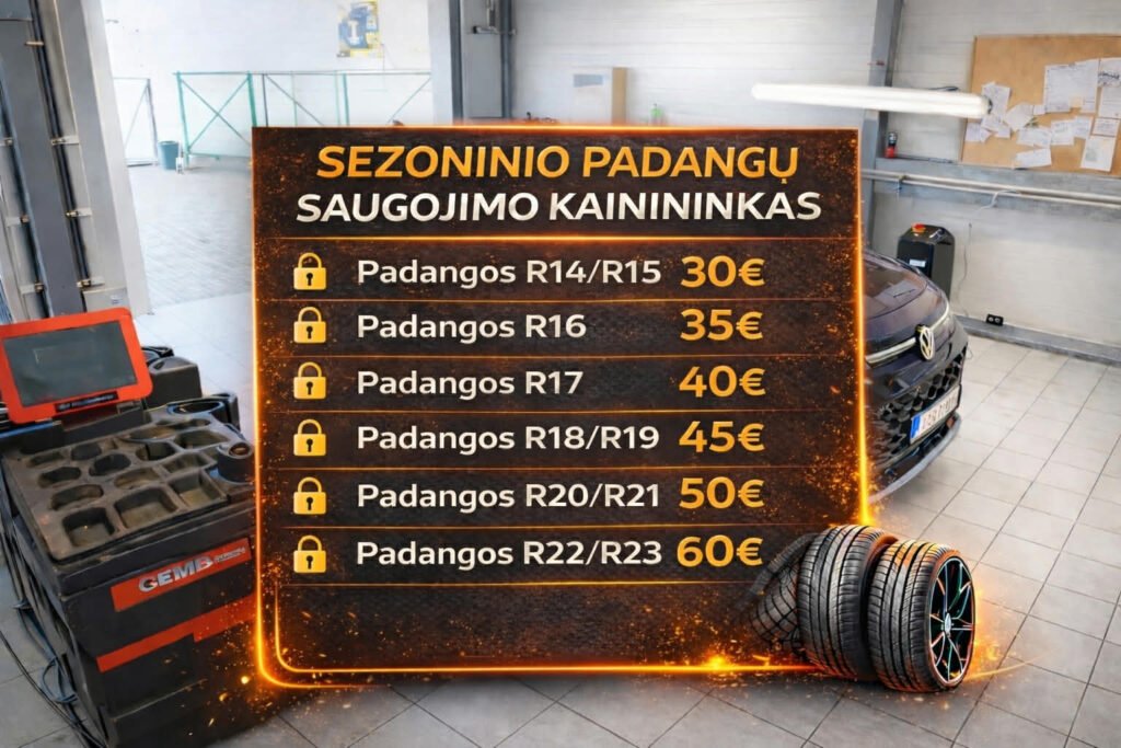 * Padangų saugojimo kaina galioja tik atliekant montavimo–balansavimo darbus mūsų servise.